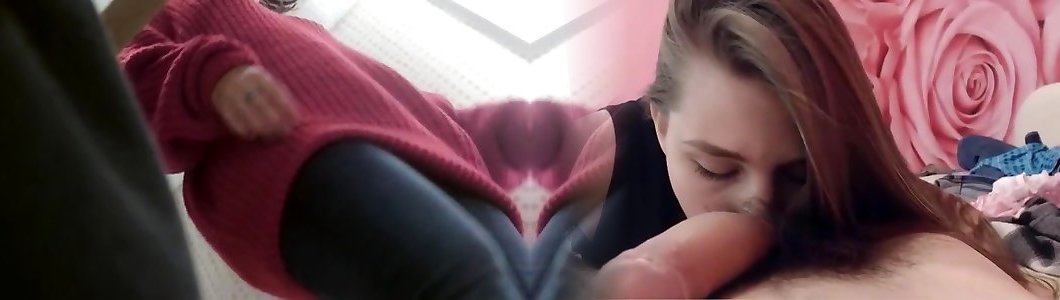Pigtailed ash-blonde pushing lollipop down mouth