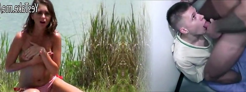 Boy peeping on a dame sunbathing nude then b