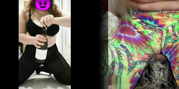 Pummeled her honeypot with a bottle of champagne at the hotel. Getting Off.