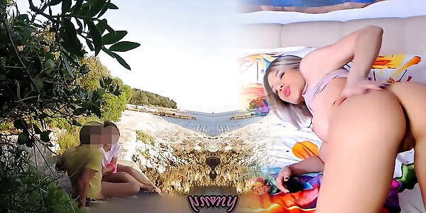 amatoriale francese stepsister tocca il cazzo sulla spiaggia pubblica per il suo fratellastro davanti a tutti con sborrata-quasi catturato