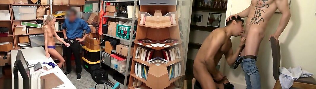 guardia di sicurezza penalizzato pulcino per taccheggio-sperma in gola